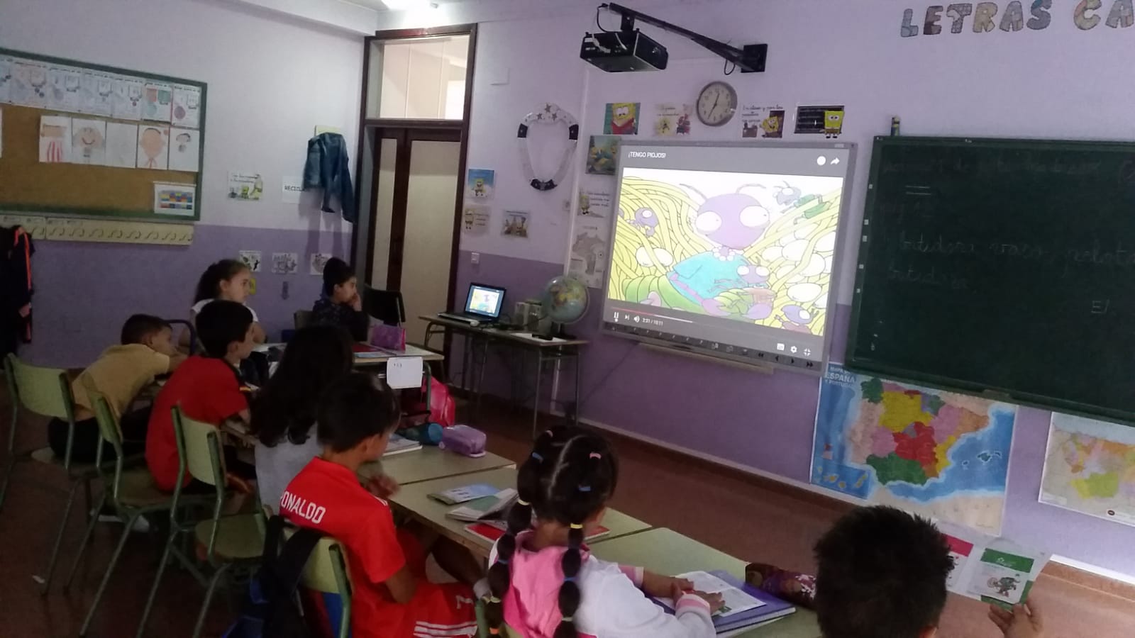 Los alumnos de 3º y 4º de primaria hemos participado, como el resto de alumnos del centro, en una campaña para prevenir y estar a salvo de los tan molestos piojos. Para ello, hemos podido visionar un vídeo en el que e no explica cómo viven, se reproducen y mueren estos parásitos y qué acciones debemos llevar a cabo para combatirlos y prevenirlos. Ya sabemos que ni saltan ni vuelan, por lo que sólo se pueden contagiar por contacto con alguien que los tenga o por usar objetos de personas que los tienen, como pueden ser gorras, auriculares, almohadas,... Por ello es importante no compartir ciertos objetos personales como los citados anteriormente, además de otros de aseo e higiene como pueden ser peines o cepillos.